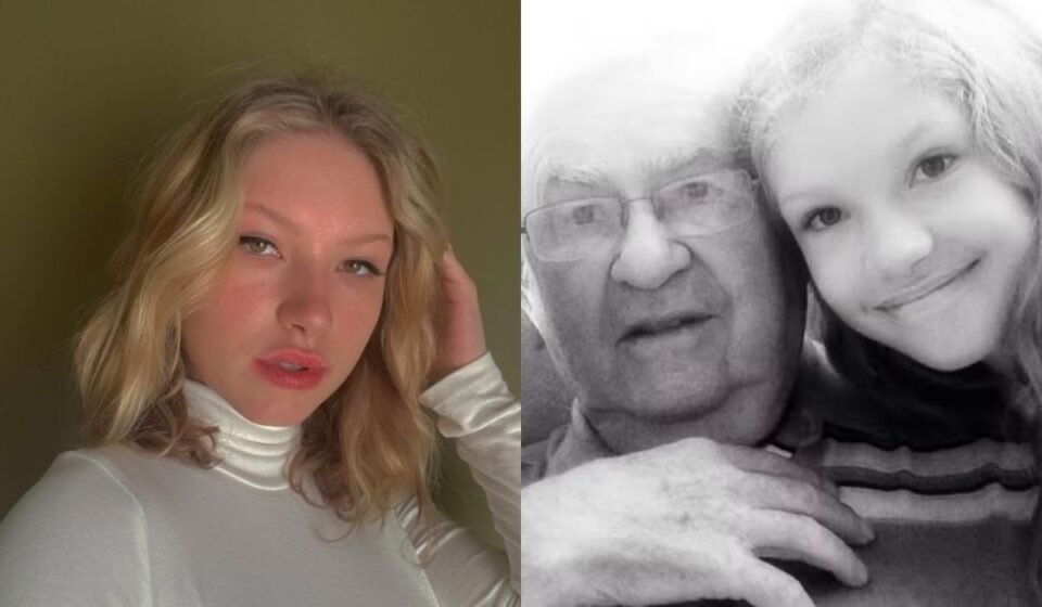 À esquerda, Lívia; à direita, ela e seu avô.