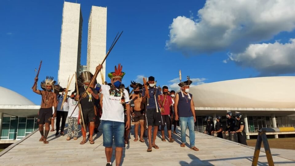 A Articulação dos Povos Indígenas do Brasil (Apib) lidera o movimento, que também protesta contra o marco temporal, legislação que limita a demarcação de terras indígenas às ocupadas até 1988. A medida é considerada inconstitucional por lideranças indígenas, que apontam retrocessos nos direitos conquistados.